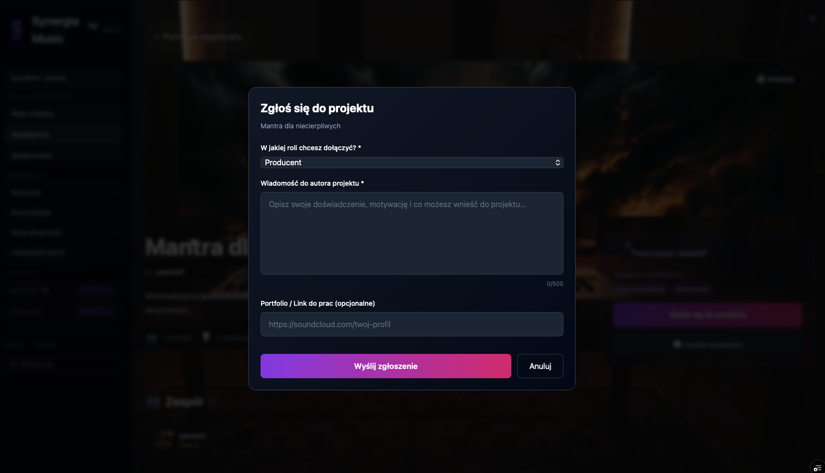 Przeglądaj otwarte projekty muzyczne i zgłoś się do tych, które pasują do Twoich kompetencji.